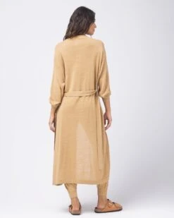 An easy summertime throw on, the Azores Duster is the lounge staple you didn’t know you needed. Fashioned with a removable belt and ribbed trim, this linen knit sweater kit duster can be worn with the Azores Top and Azores Pant for a chic three-piece resort look.
