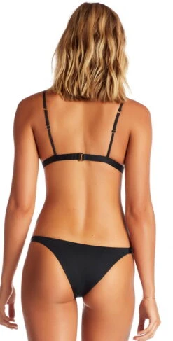 This Beach Riot Leah One Piece in black and white offers a floral patterned top with quilted fabric on the bottom and a keyhole cut out in front. This black and white one piece has adjustable shoulder straps with an open back, and a cheeky bottom.