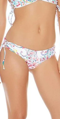 The L Space Ella Bottom is a vibrant Paisley design featuring a strappy detail on the adjustable sides that crisscross down your hip and tie. Make these hipsters your new, sexy go-to beach bottom! These paisley printed bottoms pair perfectly with the L Space Paisley Gwen Top.