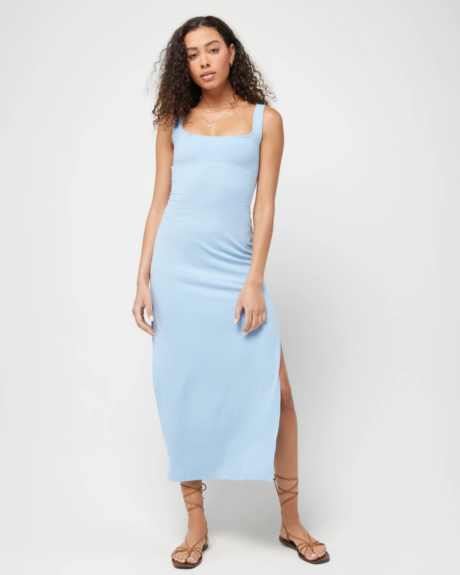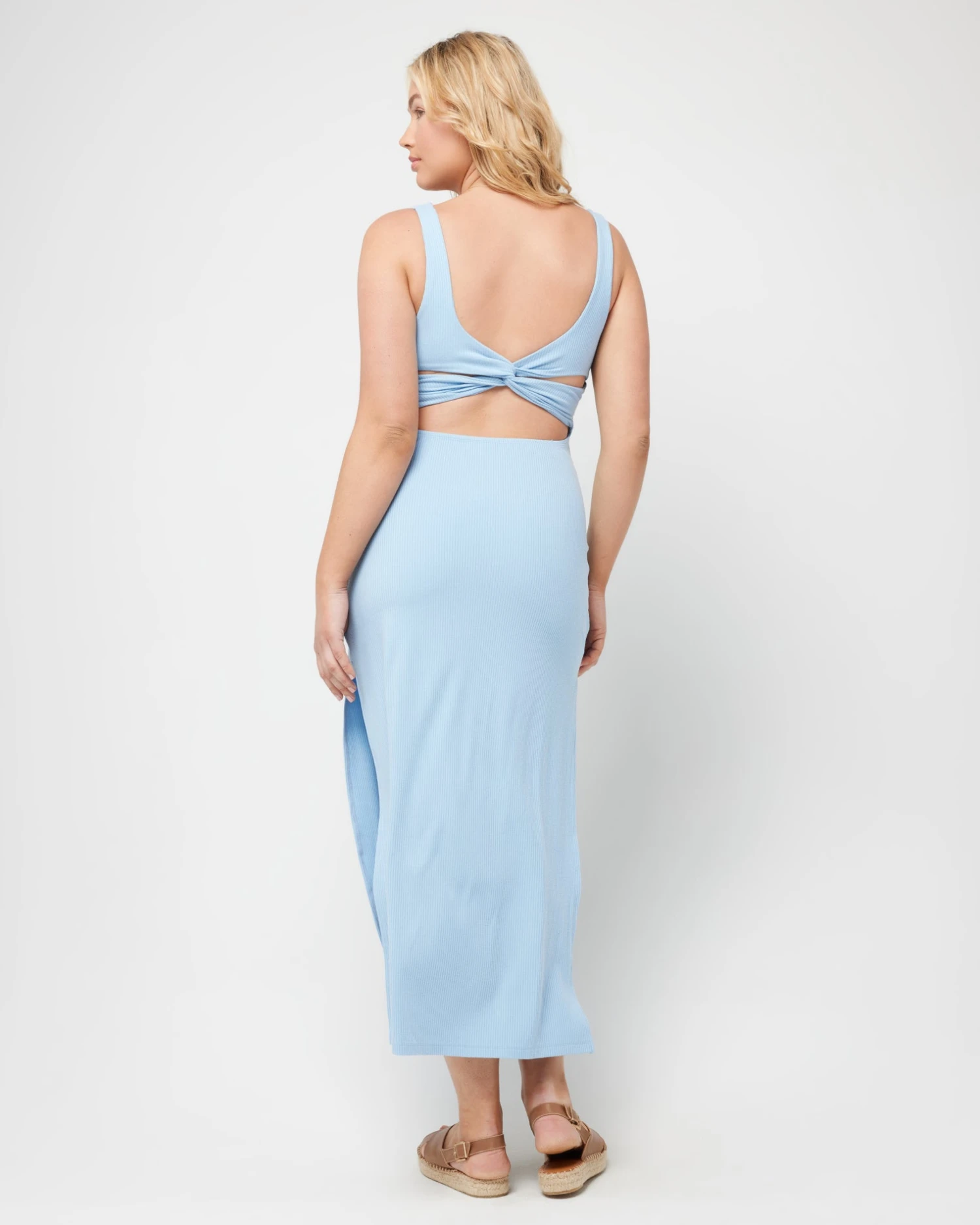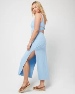 Simple from the front, yet oh so sexy from the back, the Mara Dress is that seamless day to night dress you’ve been wanting. Featuring a soft square neckline, this ankle length dress stuns with its high side slits, interior shelf bra, and low back cutout with twist detail.