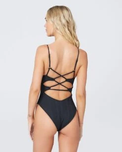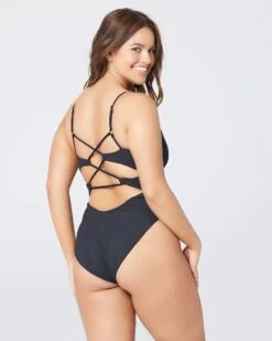 Classic in the front, sexy in the back, the Gianna has it all! This flattering pointelle rib one piece features a deep v-neck front and flattering high leg. A modern cut out back with adjustable straps adds a little edge to this sophisticated style.