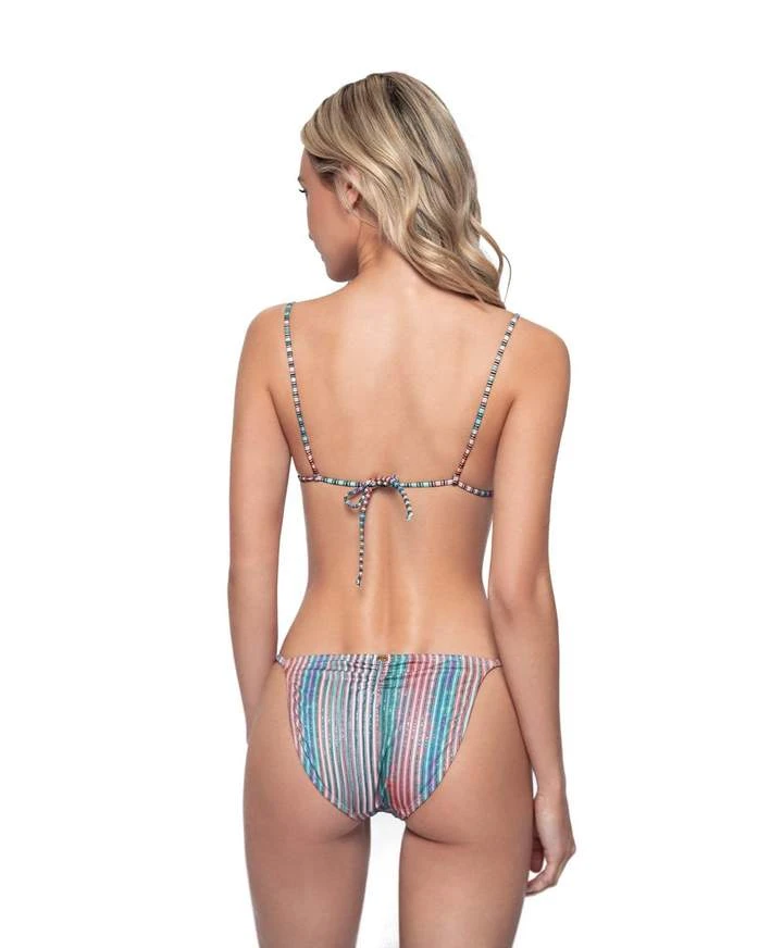 This PQ Swim top features a unique retro design. Bandeau style with spaghetti straps that tie in the back. Looks great paired with the PQ Swim Nirvana adjustable bottoms! Comes with removable padding.