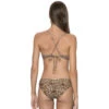 This sapphire bralette features a stretchy and textured fabric with shimmer detail. This top comes with underwire and a criss cross tie closure in back, this top does not have removable padding.