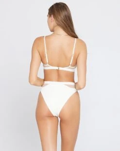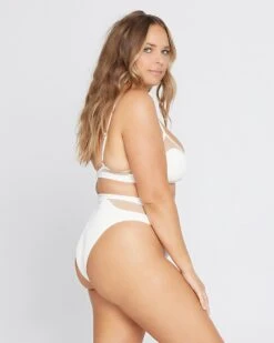 The Sadie gives new, head-turning dimension to the v-front bikini top, with an ultra modern mesh detail paired with super soft ribbed fabric. Features adjustable straps and 3-point back closure.
