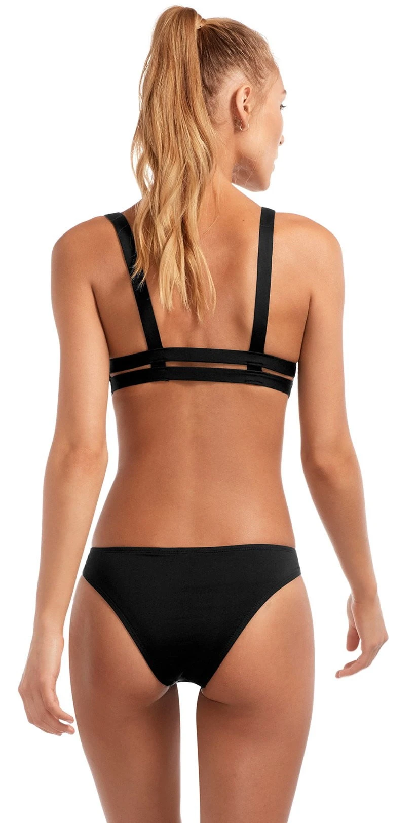The Vitamin A EcoLux Neutra Top is a sophisticated and chic solid Black Bralette featuring a double under-bust band for added support and lift that continues on the back. Pullover design for comfortable all day wear! Pair with the Vitamin A Black EcoLux Teeny Hipster!