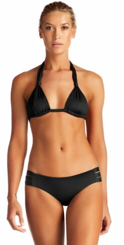 The Vitamin A Black EcoRib Lou Top is a sexy black bikini that ties in the front for a custom fit. This ribbed top is sexy, stretchy and bound to become your new all time favorite bikini. Pair with any EcoRib Bottom in black.